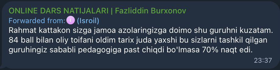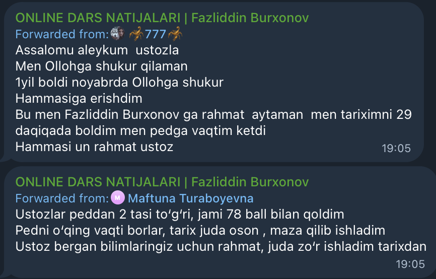 Professional tarix o'qituvchisi, 5 yillik tajribaga ega.
