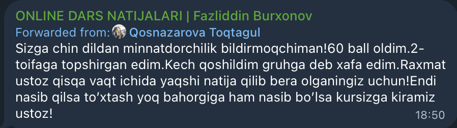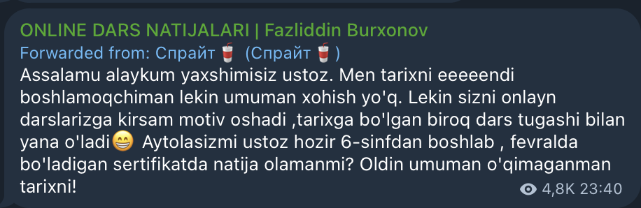 Professional tarix o'qituvchisi, 5 yillik tajribaga ega.